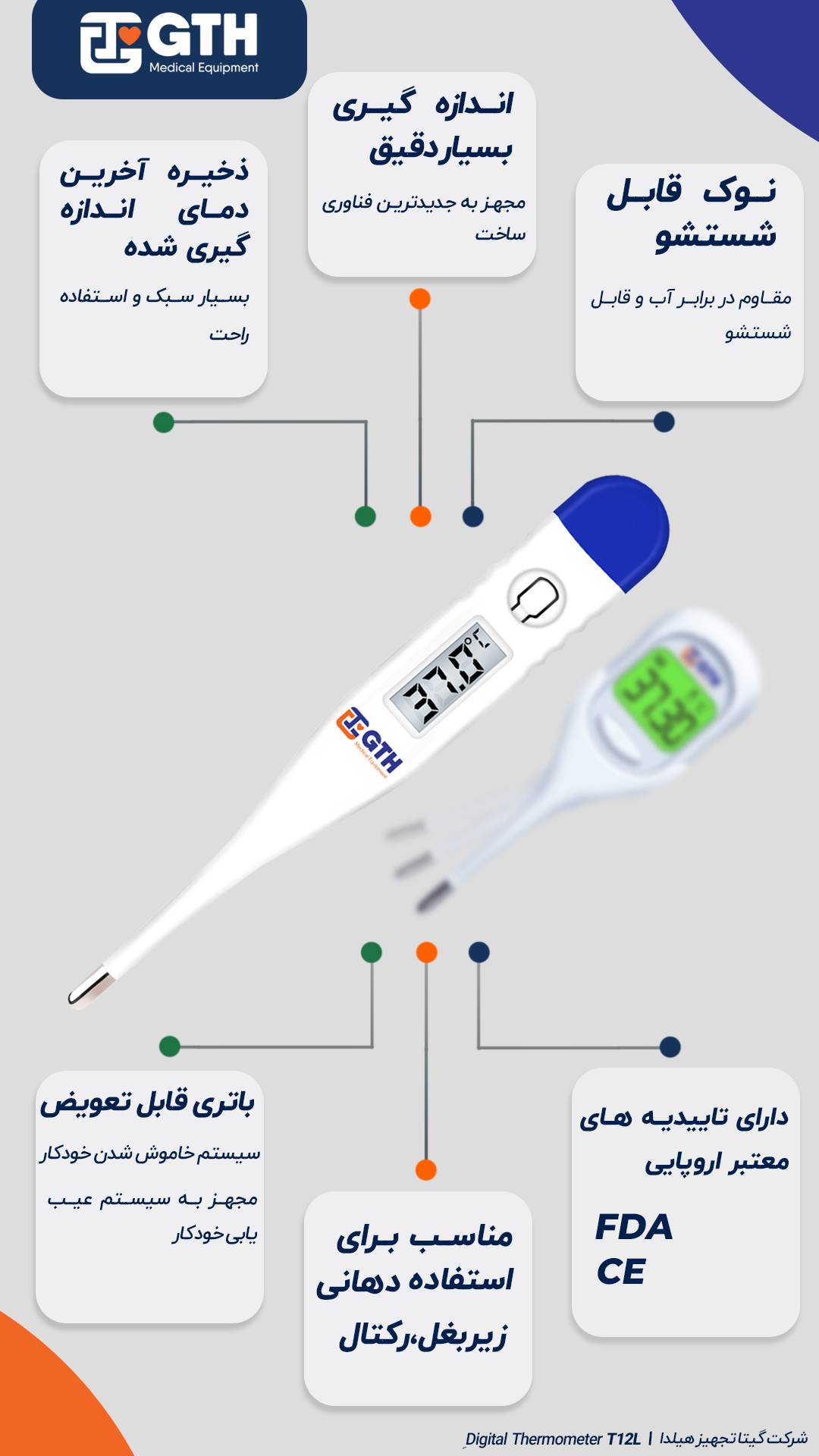 تب سنج دیجیتال مدل T12L برند GTH Digital Thermometer